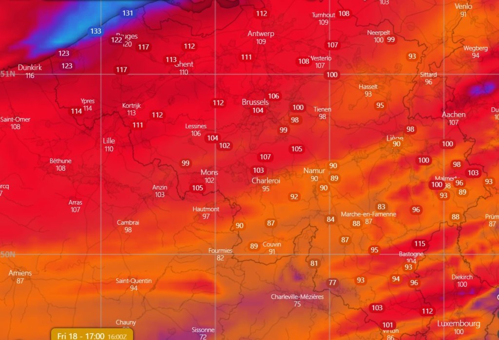 De sterkste rukwinden in Belgïe zijn te verwachten op het einde van de namiddag: