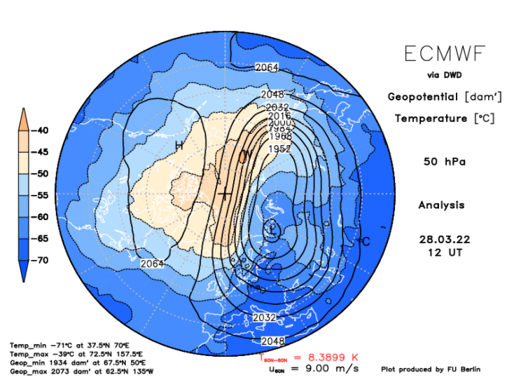 De noordstroming is diep ontwikkeld. Toch mooi, zo'n stratosferisch toetje aan het eind van een verder teleurstellende winter.