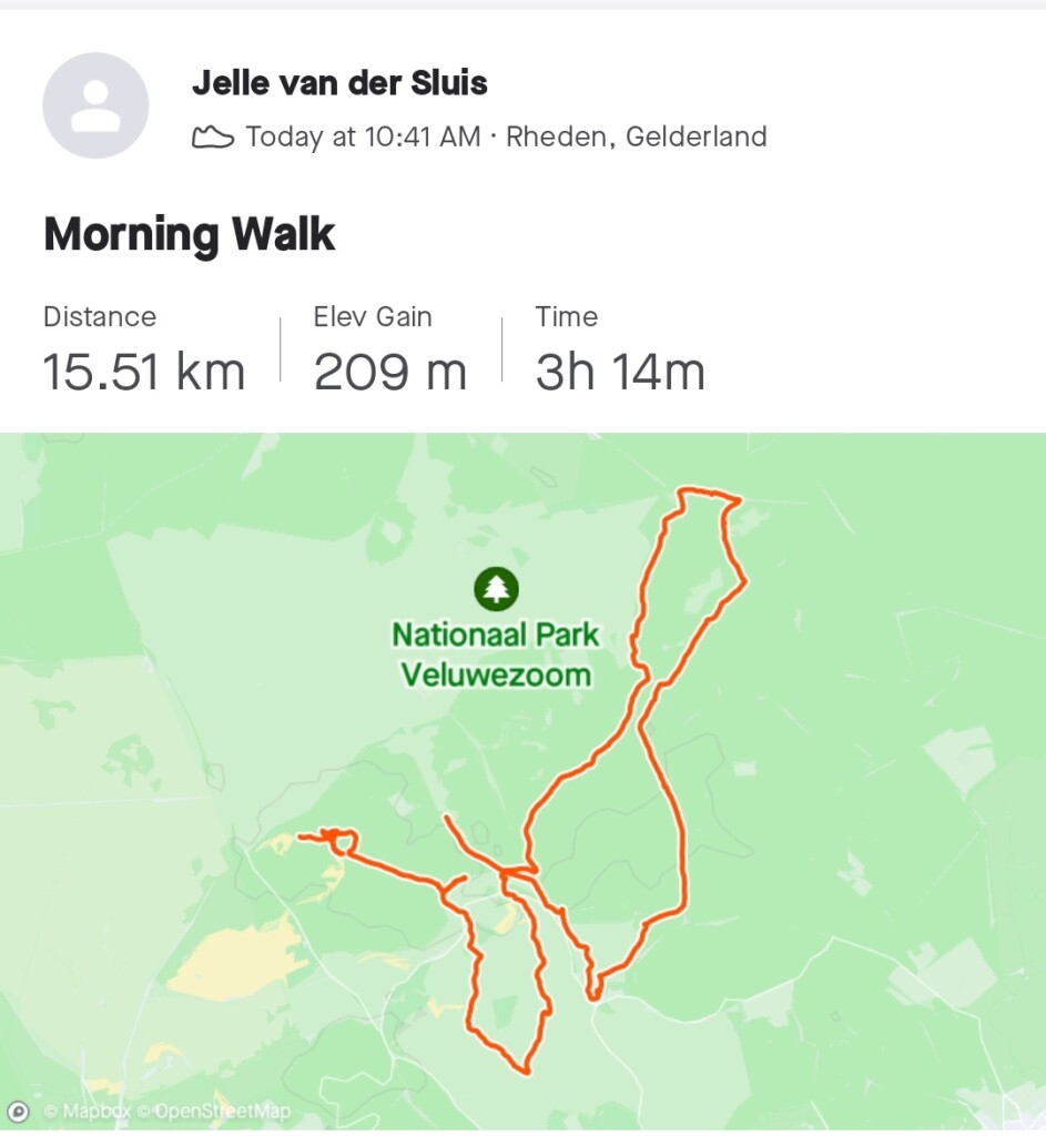 Is bij Rozendaal/Rheden op de Veluwe en rond het hoogte punt van Midden-Nederland. Zie hier de door mij afgelegde route van vandaag, in totaal bijna 5 uur weg geweest. Wel veel gepauzeerd en de app ook