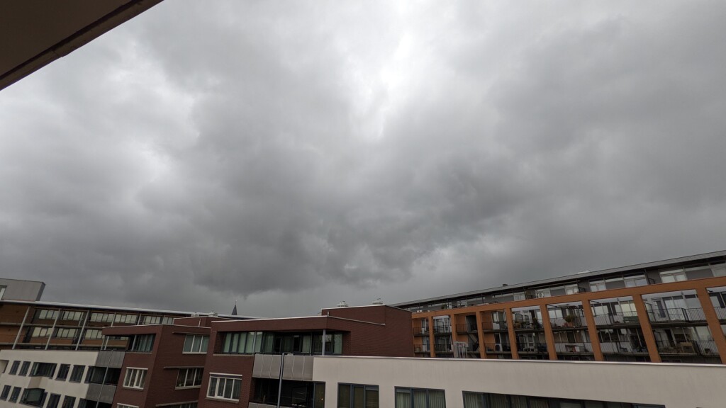 Hier geen schade, uiteindelijk 4 slagen gehoord, nog twee rommels gehoord, ik schatte de windvlagen rond de 90 km per uur, het kan heel goed dat er schade bij deze buien ontstaan, dat gebeurde hier vooral op 31 maart 2015, toen zelfs een spoor van vernielingen door een downburst