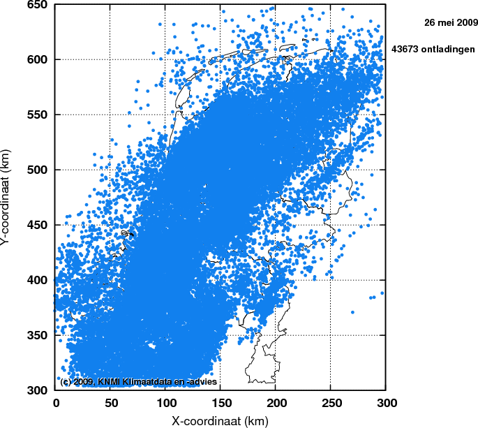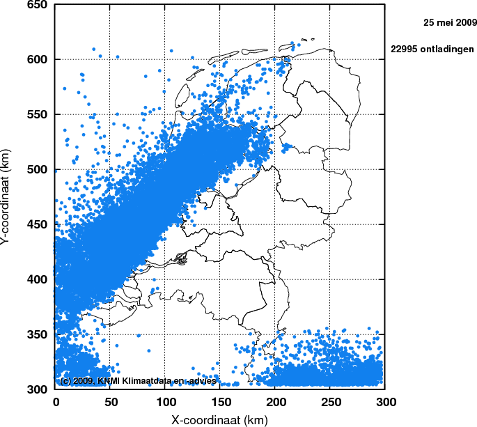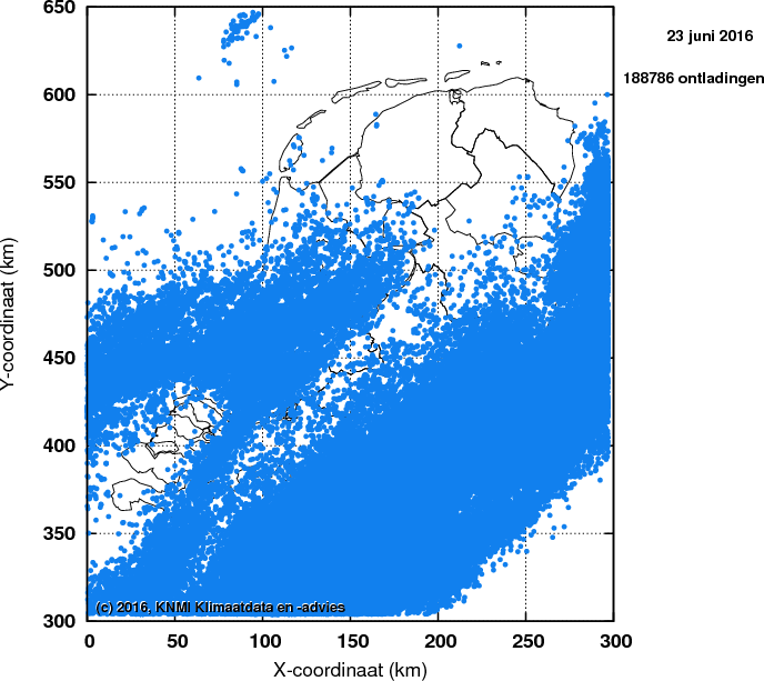25 en 26 mei samen hadden bijna 67.000 ontladingen. Dat is een stuk minder i.v.m. bijvoorbeeld 29 mei 2018, 16 augustus 2020 of 23 juni 2016. Nu moet wel gezegd worden dat de situatie van 25/26 mei bijna perfect boven de Benelux lag, de andere hadden wat meer "witte" plekken. Maar dan alsnog niet een bijzonder hoog aantal ontladingen.