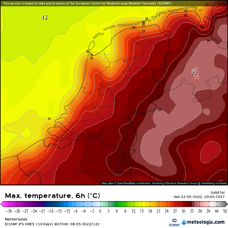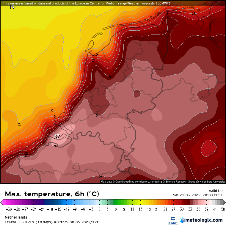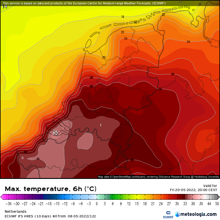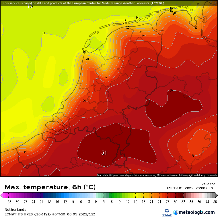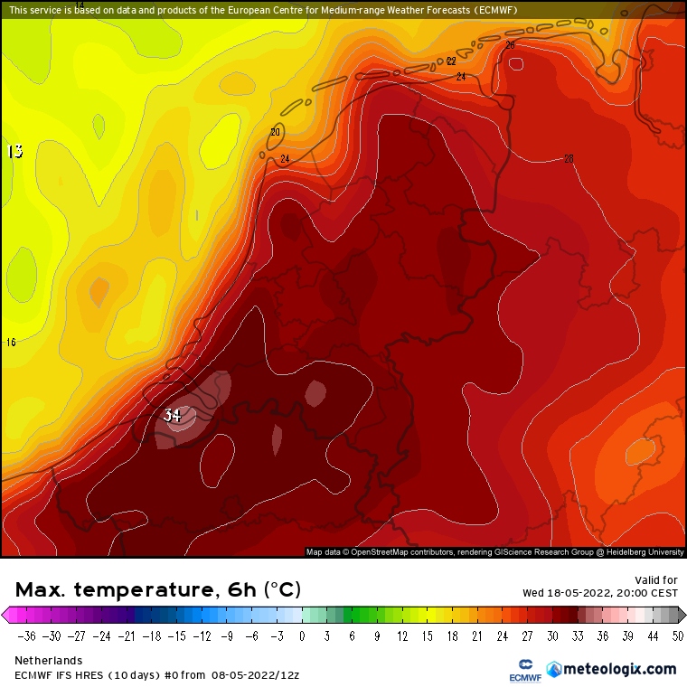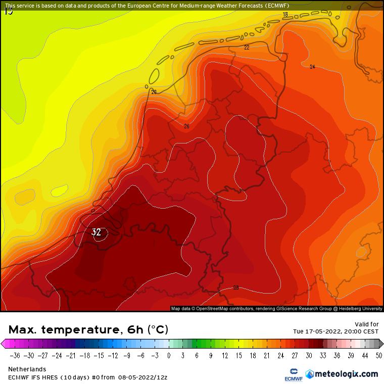 Zoals gezegd, vanwege een bias omtrent instraling en de (zeer) droge bodem mag je er waarschijnlijk nog 1 of 2 graden bij optellen.