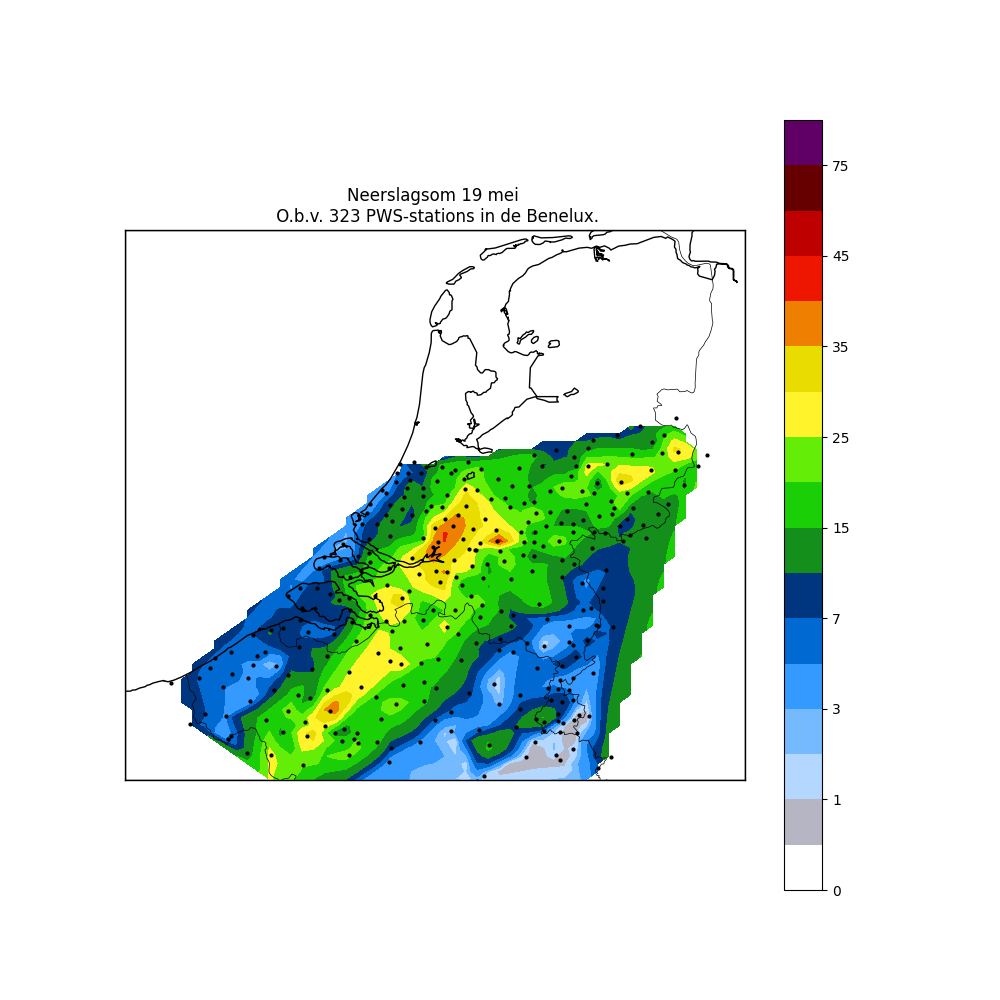 Getuige de neerslagkaart gebaseerd op data van PWS-stations.