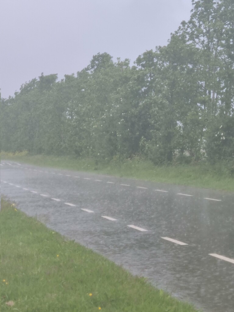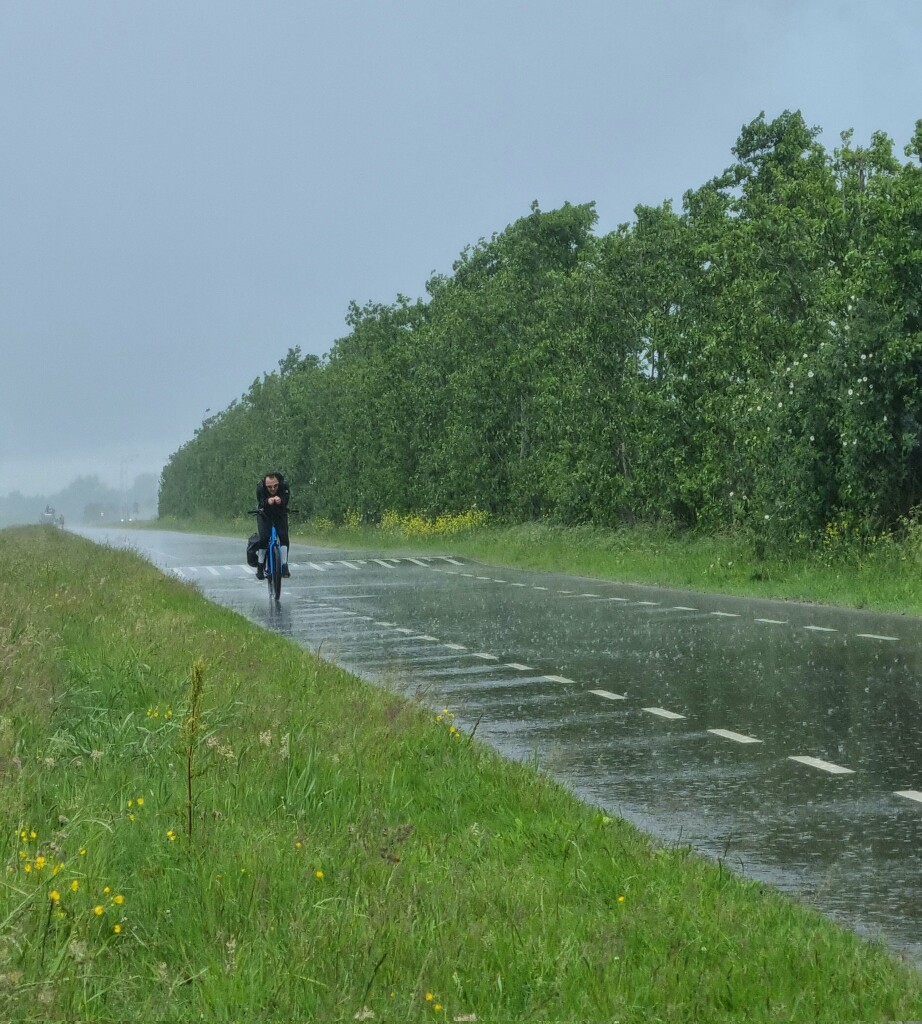 Deze fietser is op de vlucht voor het aankomende regengordijn op de achtergrond.