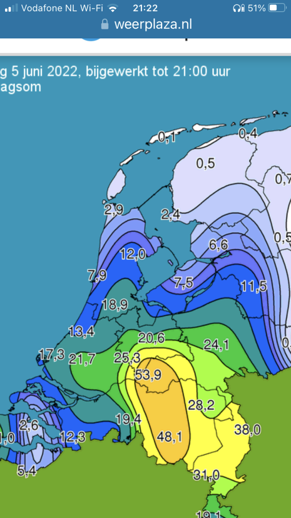 Mogelijk meerdere plekken in Nederland >100 mm vandaag.