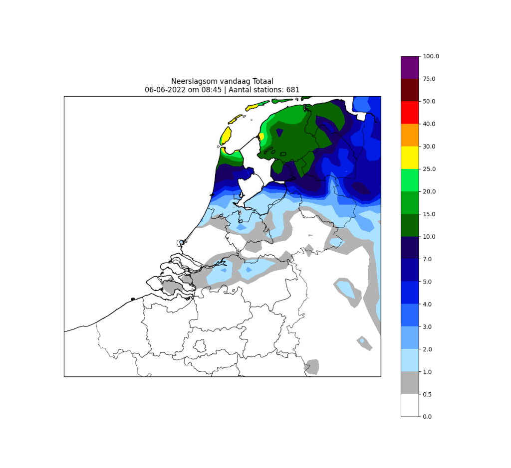 Op basis van ruim 600 PWS-stations. Ben benieuwd wat de kaart met de 325 handmatige neerslagstations aangesloten bij het KNMI ervan maakt.
