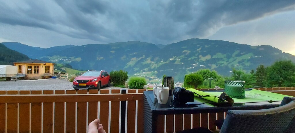 Wim! Ik zit hier op het balkon, aan de koffie, camera op tafel ( in de aanslag) op 800m hoogte uitkijkend in zuidelijke richting over het Zillertal. Wat is dit ontzettend genieten!!