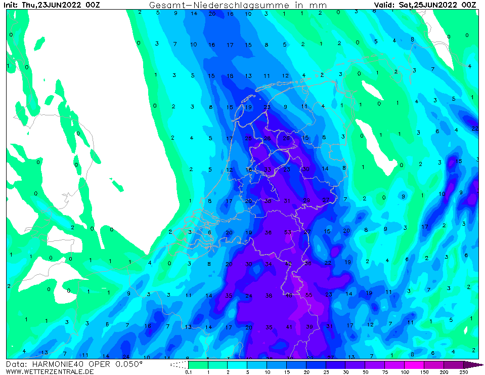 Uiterste noordoosten van Nederland en zuidwest van België blijven een stuk droger. Zaakje is wel steeds westelijker uitgekomen de afgelopen runs.