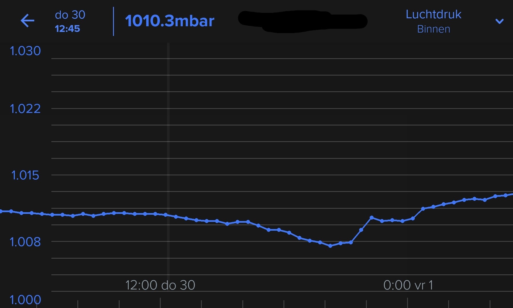 Verder uitgerekt krijg ik de grafiek niet. Hoe verder ik de grafiek uitrek, hoe meer meetpunten er verwijderd worden. Plotselinge pieken en dalen worden eruit gepoetst dus.