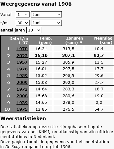 Bij weerstatistieken vind ik voor de Kooy 307 uren zon voor juni, een tweede plaats na 1970. Zijn die gegevens dan niet compleet?