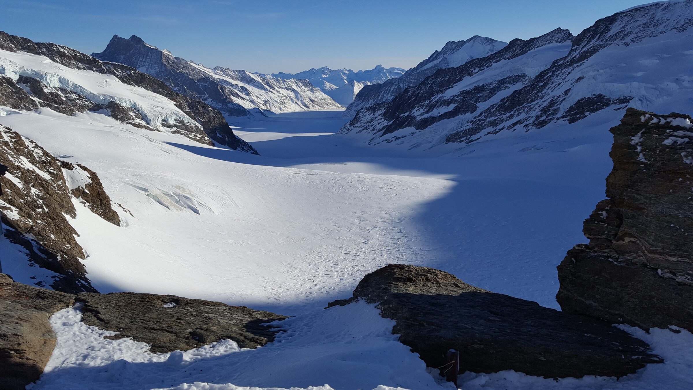 In de foto links ook te zien (Aletschgeltsjer, Zwitserland)
