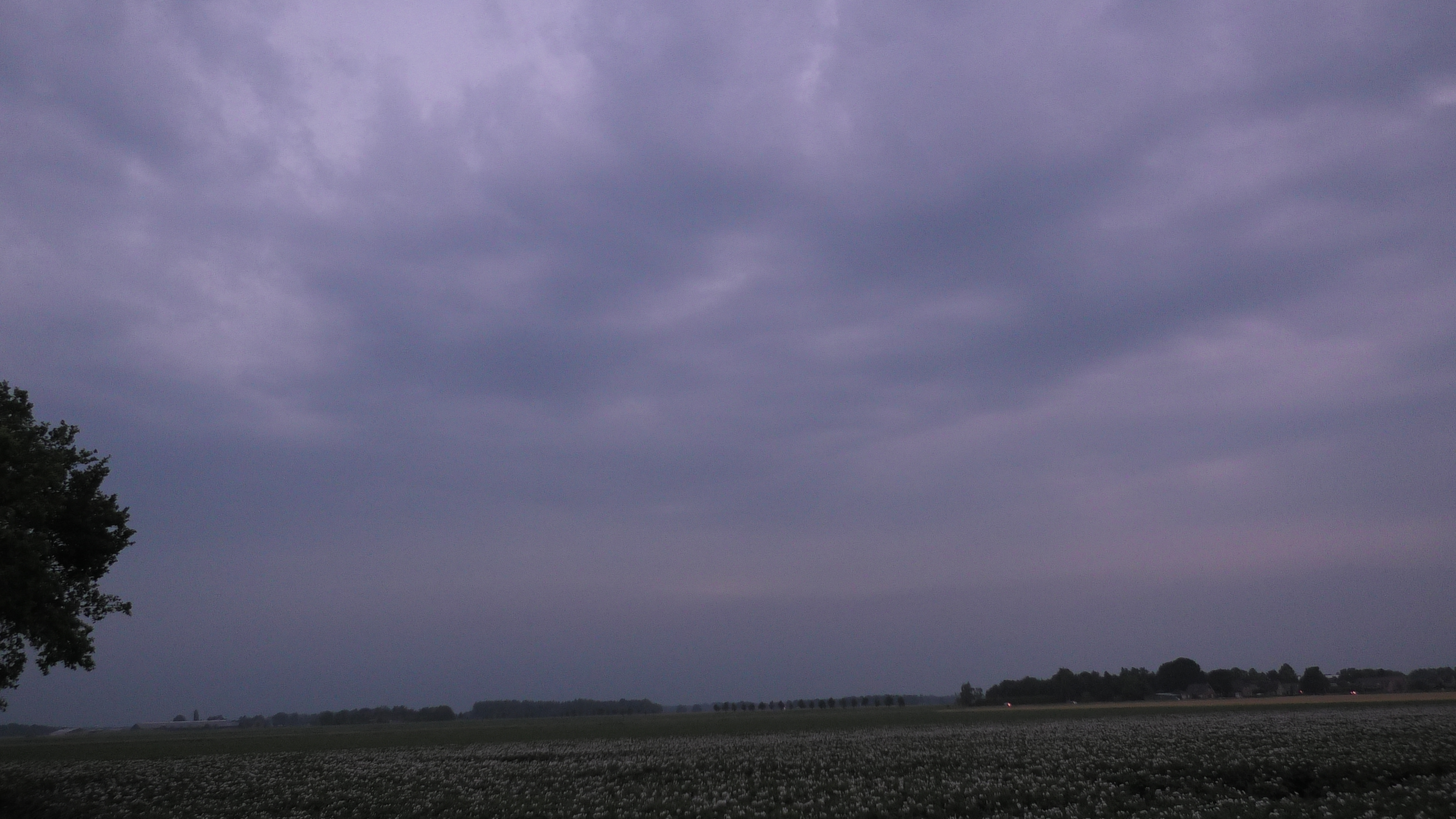 Op donderdag 30 juni 2022 ondernamen wij een stormchase naar Klazienaveen in Drenthe. Al aan het begin van de avond regende het in Zuid-Holland. Rond 19:30 bij Utrecht werd het vanuit het zuidoosten al donkerder en ging het hard regenen. Hierbij namen we op de route op de A28 tussen Utrecht en Harderwijk al af en toe een ontlading waar. Ter hoogte van Zwolle werd het rond 20:30 in het noorden snel lichter. Wij haalden de windsprong in en reden over de A28 en de A37 naar het oosten bij Hoogeveen en Emmen. Het werd snel warmer. Van 14 graden waren we opnieuw in een gebied terecht gekomen bij Klazienaveen waar het nog 24 graden was. Op de A37 even ervoor reden we door een korte stortbui heen van een aantal seconde die later op de buienradar ook enkele ontladingen gaf. Dit toonde de grote onstabiliteit in de lucht aan. Rond 21:00 zagen we voor het front uit grote torenwolken. In combinatie met de avondroodkleuren van de zonsondergang werden de wolkenformaties steeds indrukwekkender. Om 21:15 zagen we vanaf onze stormchase-locatie bij Klazienaveen het front langzaam opdoemen vanuit het zuidzuidoosten. Een shelfcloud liet zich zien. De bliksemfrequentie steeg enorm naar 60-70 flitsen per minuut. Het werd stroboscopisch onweer. Opvallend was hierbij dat er erg weinig wind uit het noorden stond. De bui trok met de inflow heel veel lucht naar zich toe waardoor de wind sterk toenam. Rond 21:30 klapte de wind om naar het zuidwesten en trok er een angstaanjagende groene lucht over ons heen. Hagel viel mee met ongeveer 1 cm. Sterkste wind was 70-80 km/u en kort, viel ook mee. De regen joeg horizontaal langs en het regende zo hard dat het zicht terugliep naar 50-100 m. We zagen niks meer. Deze wolkbreuk met stroboscopisch onweer duurde ongeveer 10 minuten en trok vervolgens naar het noordnoordwesten weg. Aan de achterkant van de bui nog diverse mooie CC-ontladingen gezien. In de omgeving viel de schade mee, het was vooral een takkenzooi. Aan de P2000-app van Drenthe te zien waren er in de omgeving wel wat stormschademeldingen dus lokaal zal het nog wat harder tekeer zijn gegaan. Het regende vervolgens nog lang na ook door een kleine bui die achter het front aan kwam. Dit was na lange tijd weer een erg actief onweersfront wat te stormchasen viel met zeer indrukwekkende wolkenformaties.