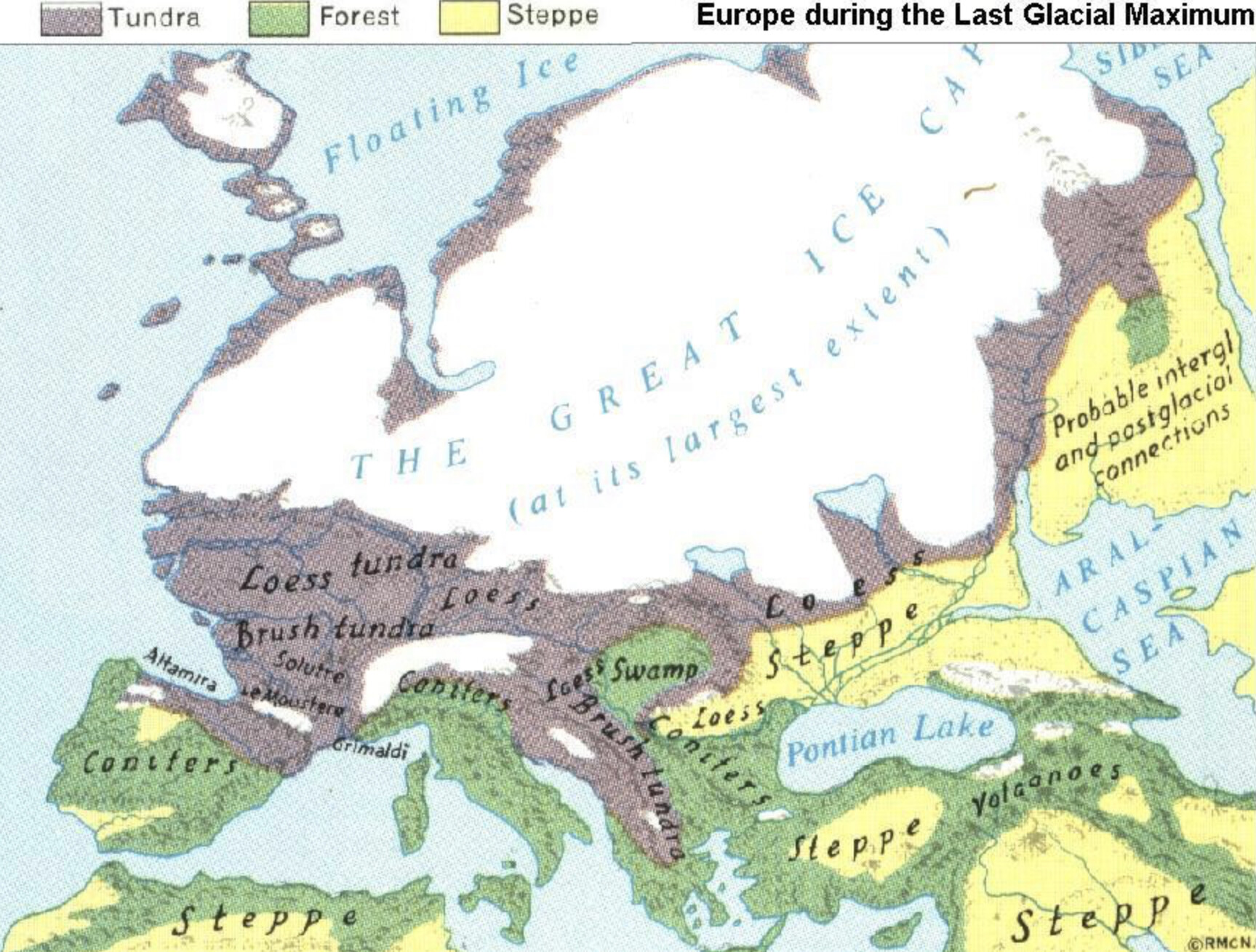 Europa ca. 20000 jaar geleden tijdens het LGM.