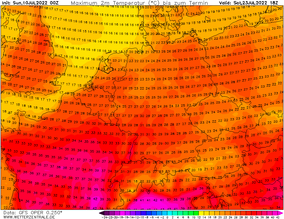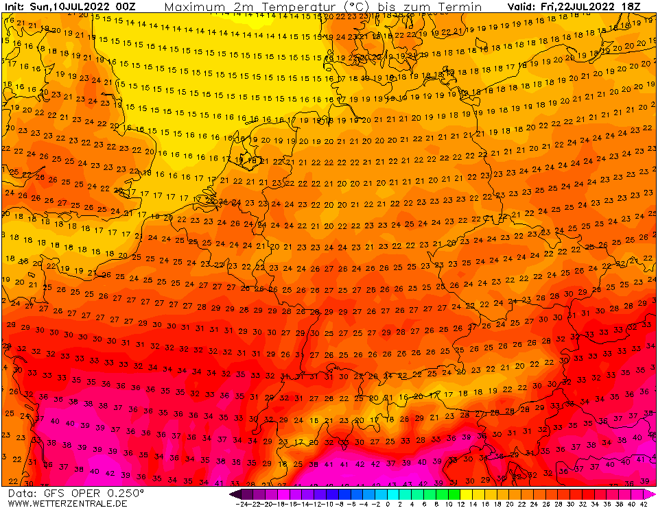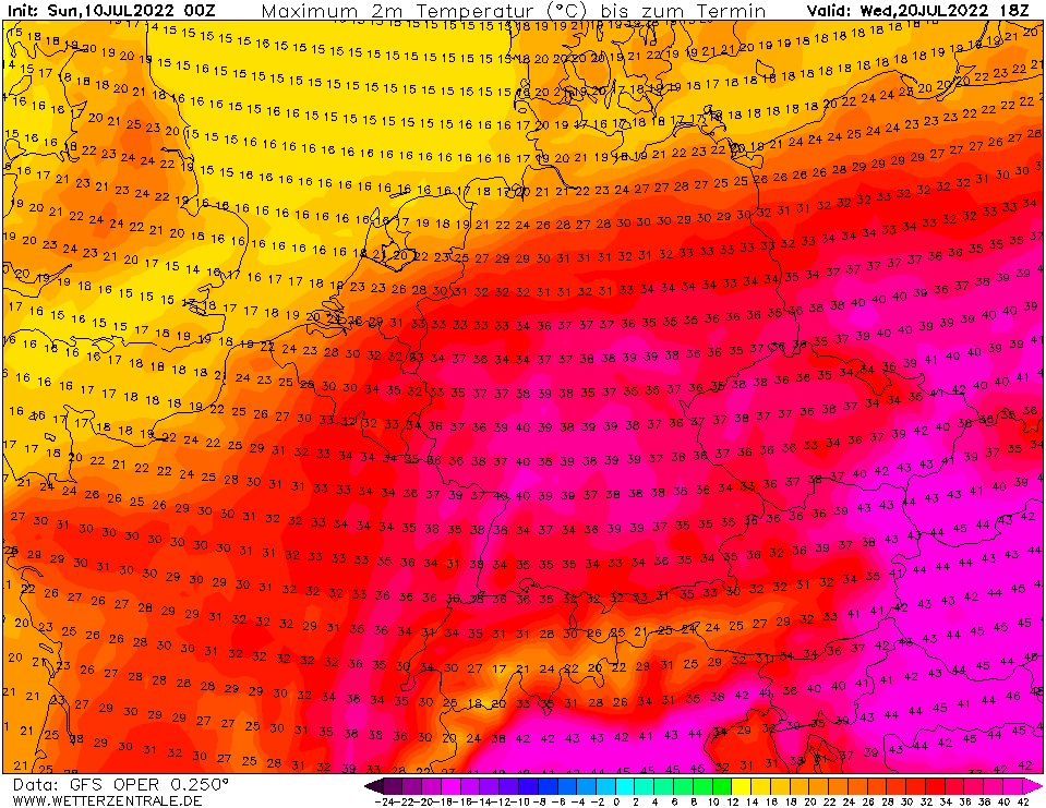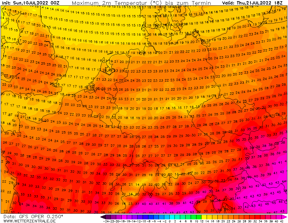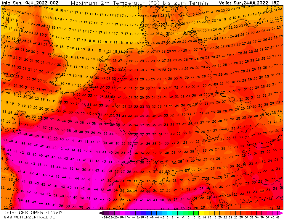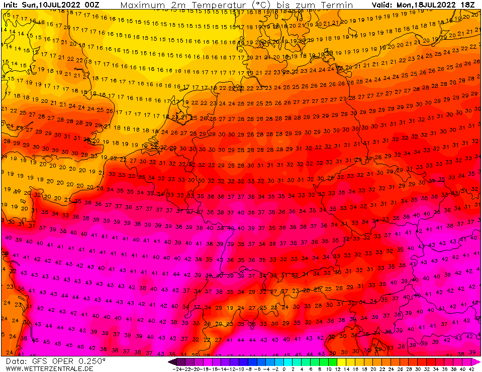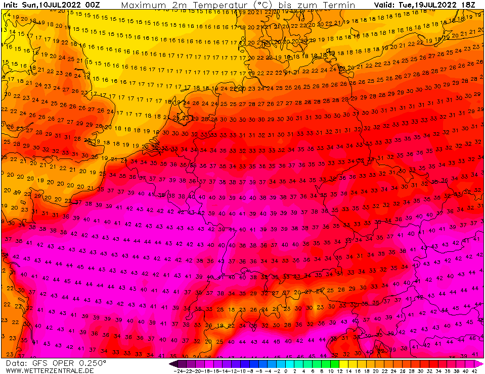 Daarna minder extreem heet, Frankrijk wel blijvend 40+ graden.