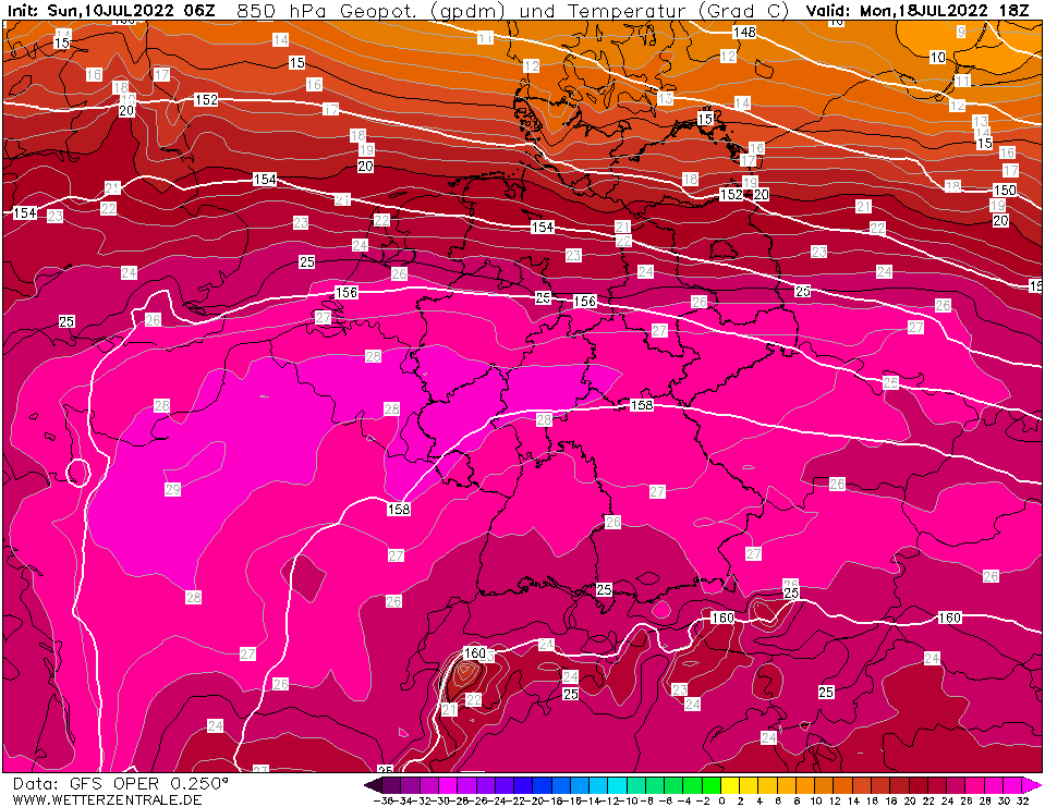 Scheelt een paar graden van een hittegolf op 850hpa hoogte.
