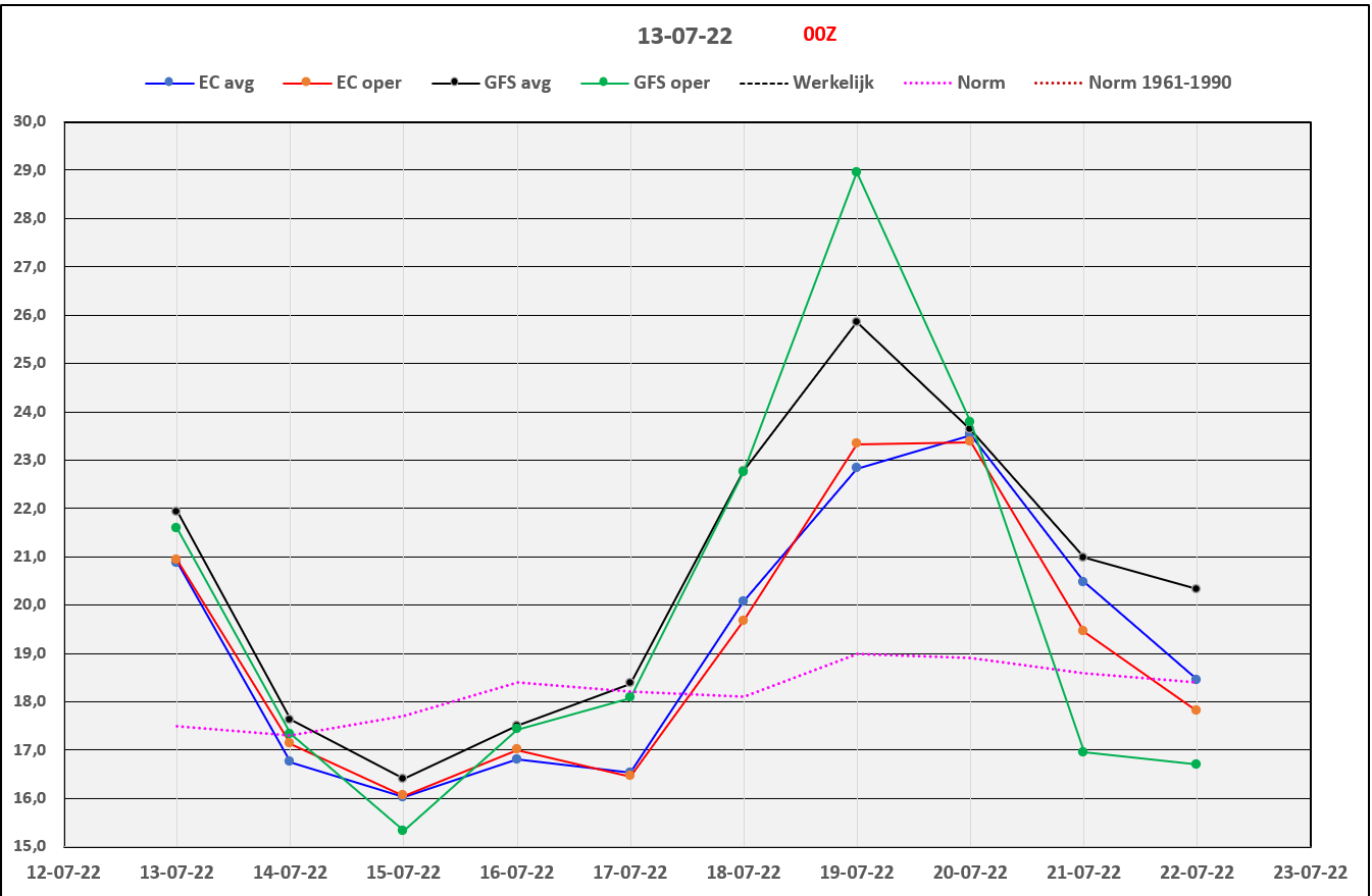 Met andere woorden, de GFS Opers zitten gemiddeld 1 graad te laag.