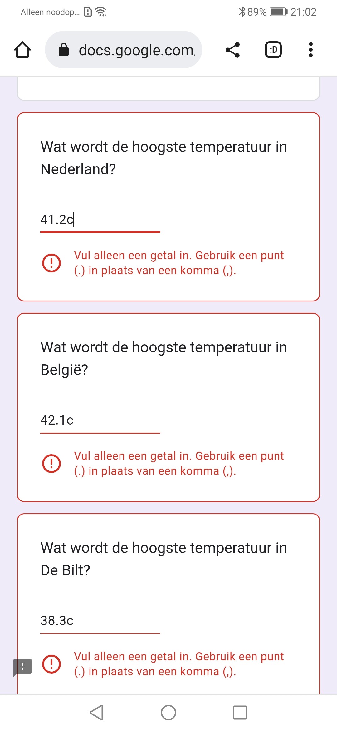 Ik kies voor 41.2c voor Westdorpe, 42.1c Nieuwe Breugel en voor De Bilt 38.3c en Ukkel 39.7c..