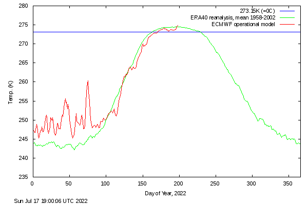 De hele junimaand is de temperatuur binnen de poolcirkel op het noordelijk halfrond onder het langjarig gemiddelde van de periode 1958-2002 gebleven.