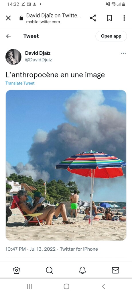 Legendarisch plaatje. De aarde brandt en de mens kijkt...