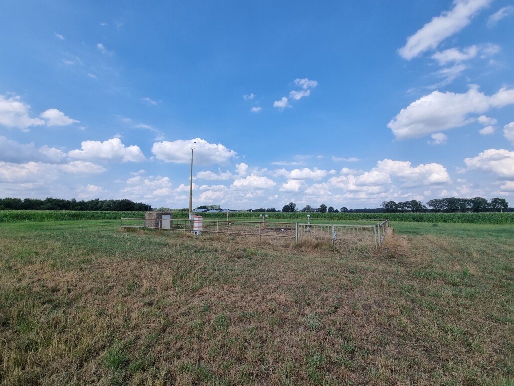 De maïs staat er mooi bij. Op een afstandje van het knmi weerstation.