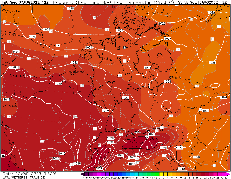 Verder is dit een buitengewoon stabiele setting waarin gortdroge omstandigheden, zonnige condities en (zeer) hoge temperaturen het weerbeeld zullen bepalen.