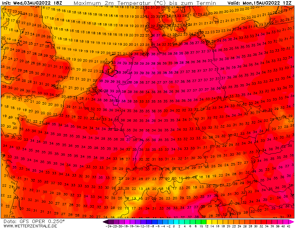 Pubrun GFS 18Z, 5 dagen achter elkaar 35 - 40 graden