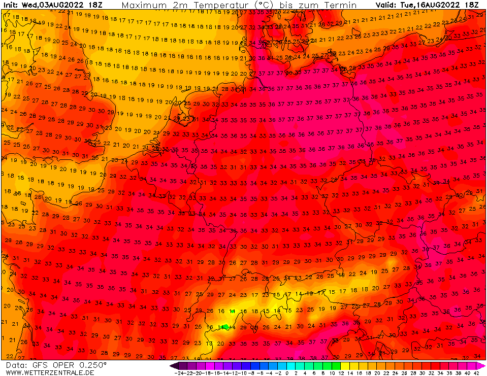 Pubrun GFS 18Z, 5 dagen achter elkaar 35 - 40 graden