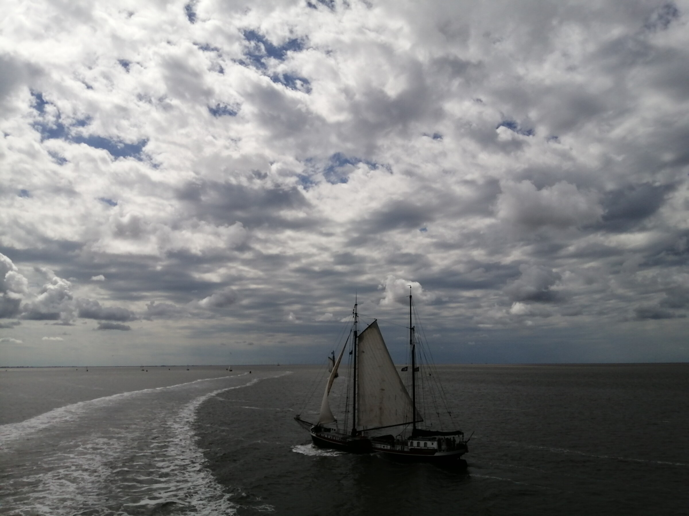 Ik zit op de veerboot naar Terschelling, bui kan het eiland net schapen denk ik.