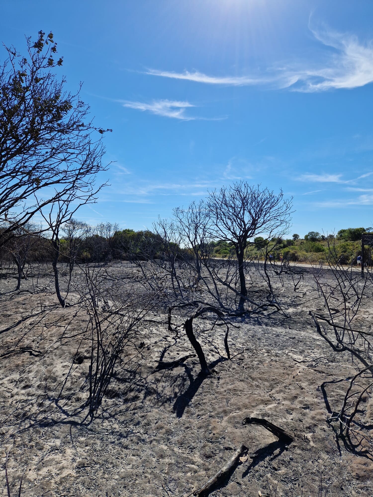Gisteren was hier een grote duinbrand. De natuurschade is fors.