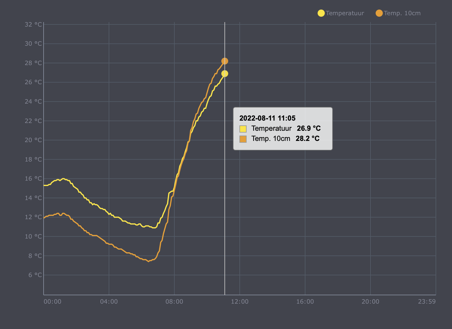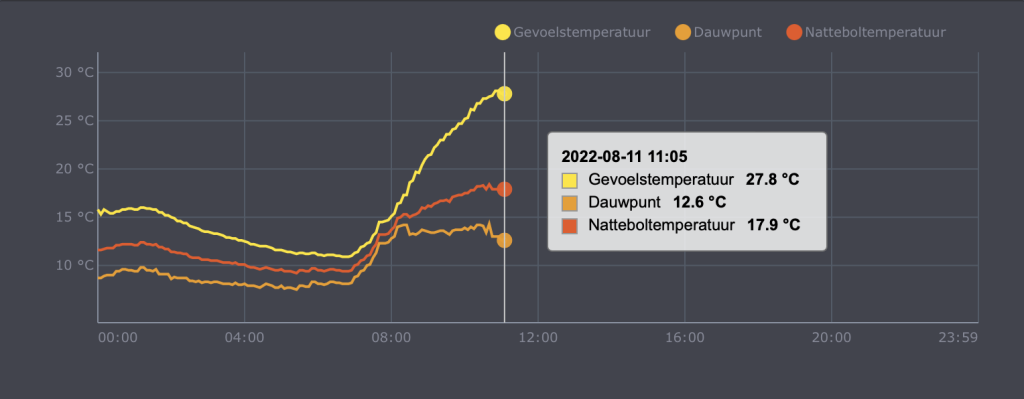 11:40 uur en 28,0 C inmiddels. Achterhoek/Twente opvallend hoog.