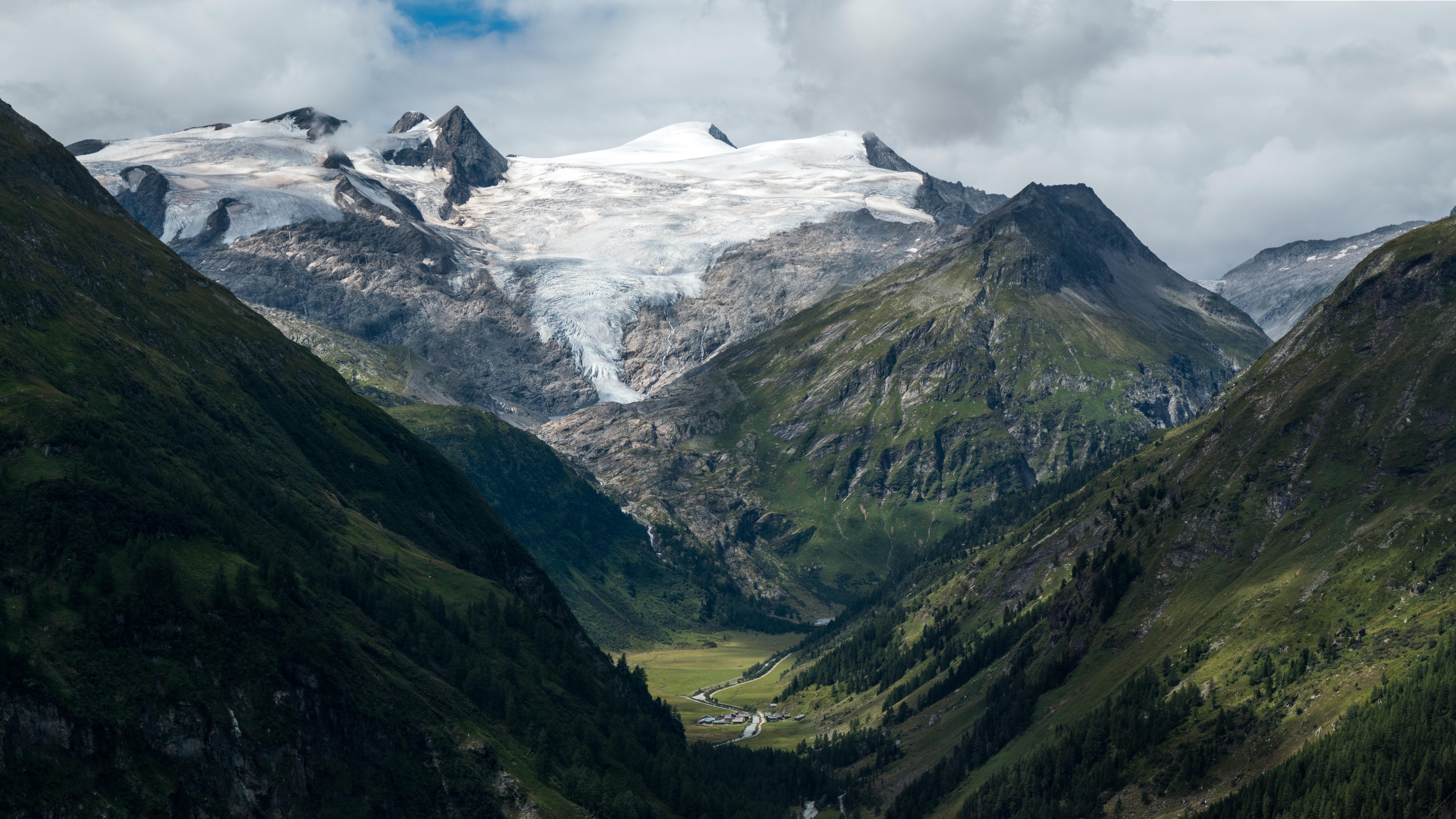Foto: uitzicht over het dal met op de achtergrond de Schlatenkees.