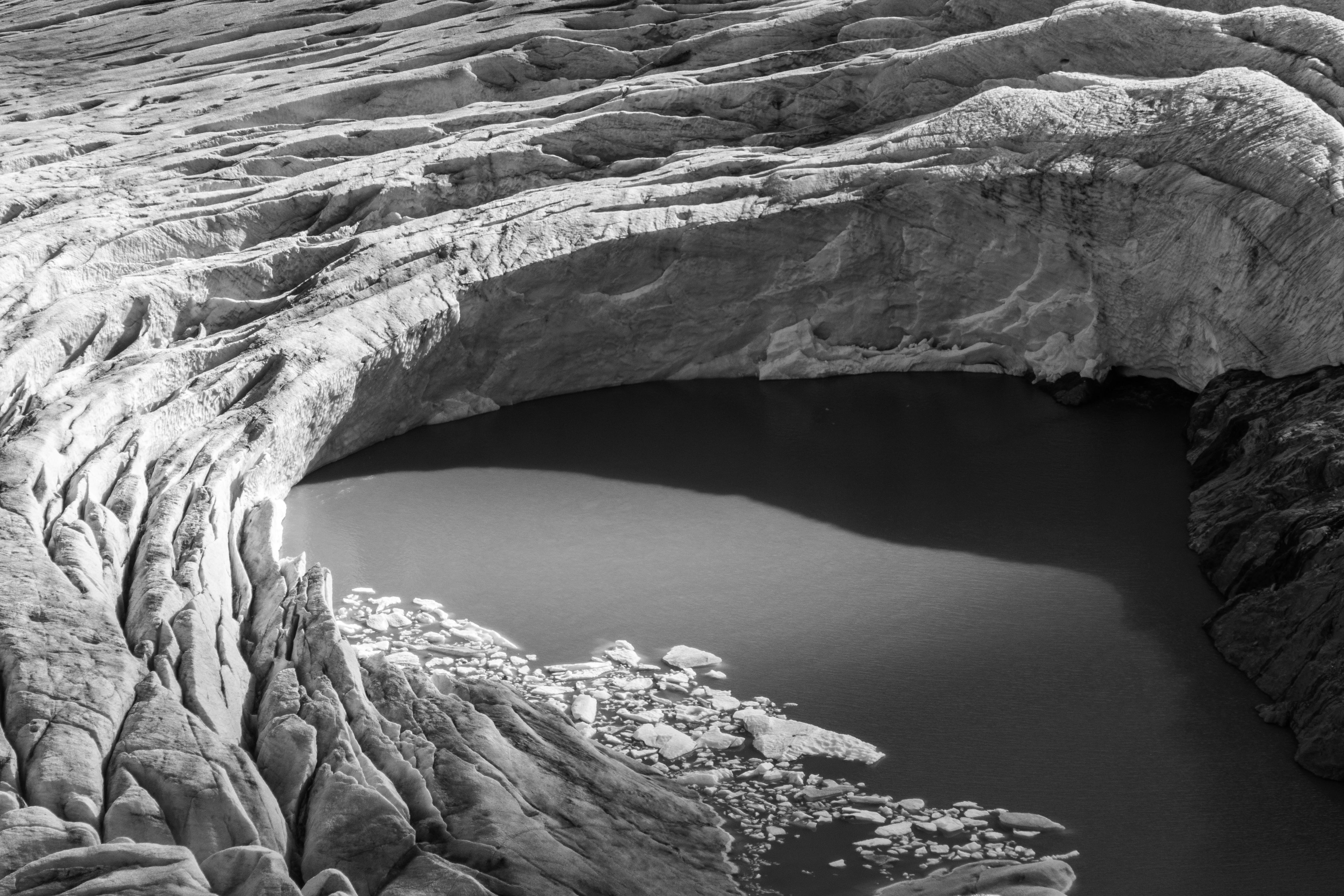 Foto: de gletsjertong valt in het water, waardoor steile ijswanden en mooie vormen ontstaan.