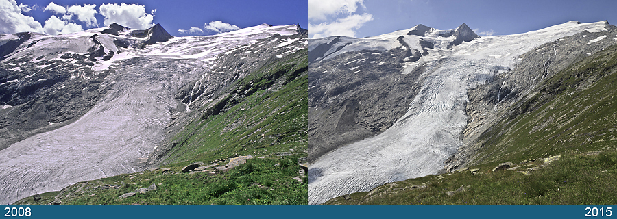 Gezien de snelle afsmelt zal de verbinding tussen de ijsval en de tong nog hooguit twee jaar in stand blijven. Tegen die tijd lijkt de tong overigens ook zo ongeveer verzwolgen te zijn door het water. Een hele verandering met tien jaar geleden, zoals onderstaande foto's van gletscherarchiv.de duidelijk maken. On nog maar te zwijgen over een verder verleden!
