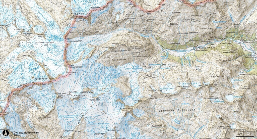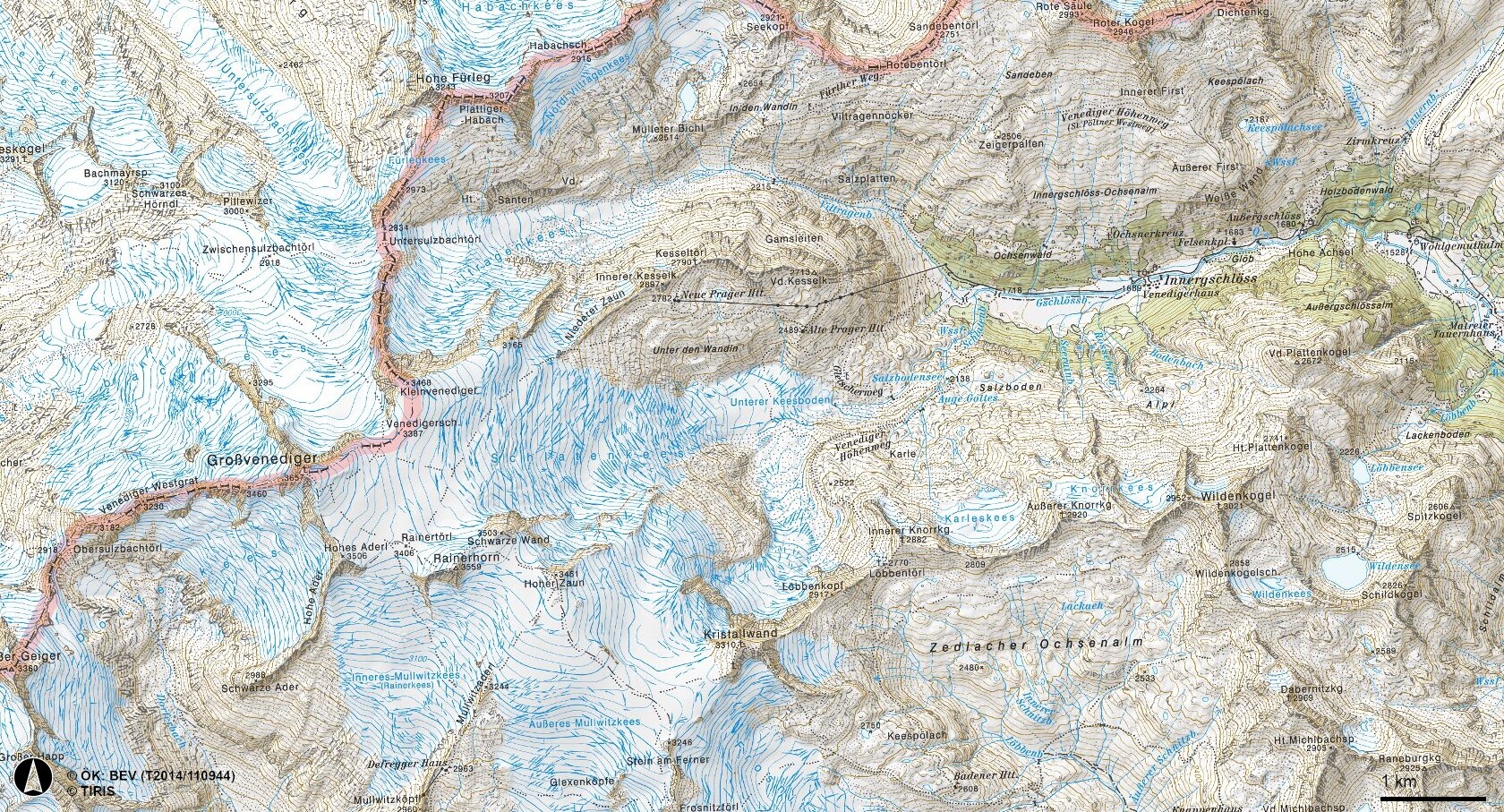 De kaart is gedwonload van maps.tirol.gv.at (online topografische kaart van westelijk Oostenrijk)