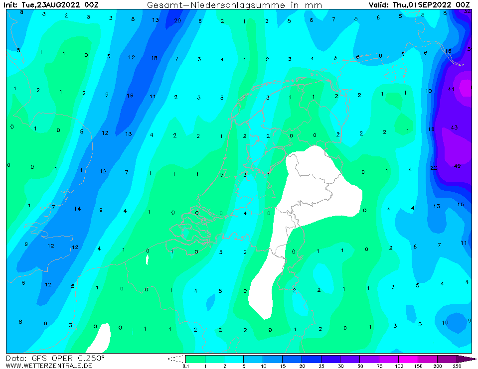 weinig of geen regen. En het blijft zomers warm zonder al te grote uitspattingen.