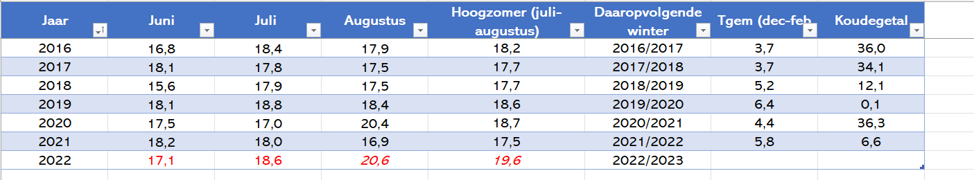 Juli, die met 18,6 graden al wat warmer was. Terwijl augustus met 20,1 graden Celsius, zoals het er nu naar uitziet, er nog een schep bovenop doet.