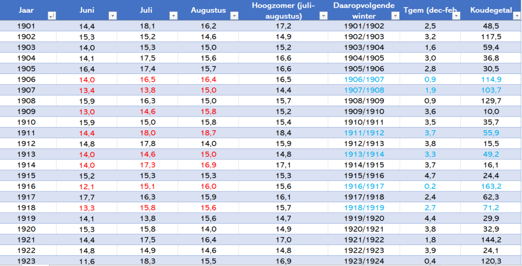Als we beginnen bij de zomers van 1906 en 1907, die dit beeld laten zien werden in beide gevallen door een koude winter.