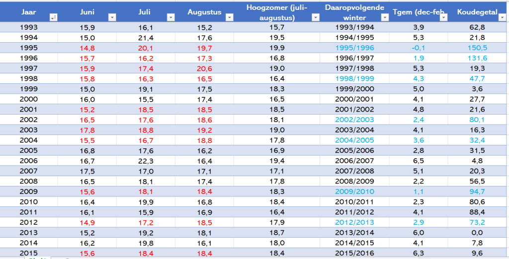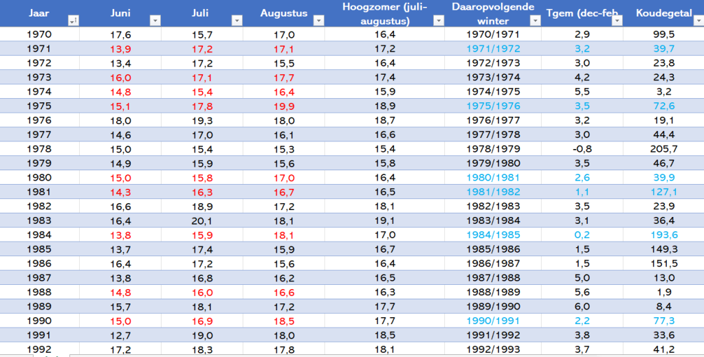 Bij deze wil ik even iets kwijt. Het valt mij namelijk op, dat zomers, die een stijgende tendens laten zien in de temperatuur, vaak worden gevolgd door een koude of strenge winter.