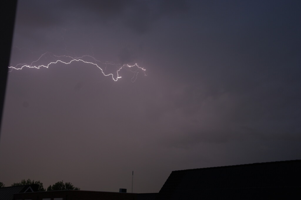 Ik mooi zicht op het weerlicht van de Groningse onweersbui