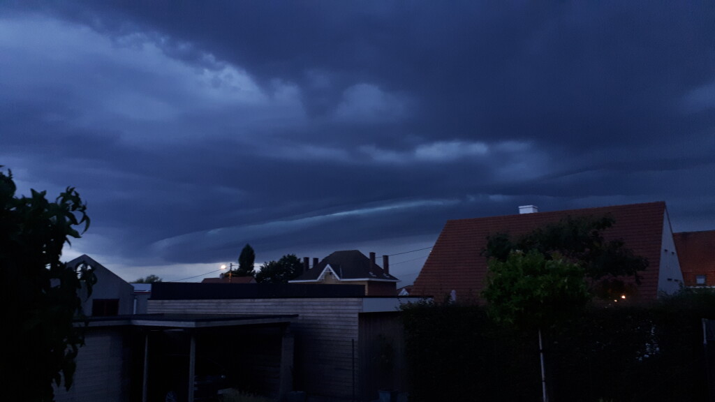 Hele donkere lucht, bliksem en gerommel net te oosten van