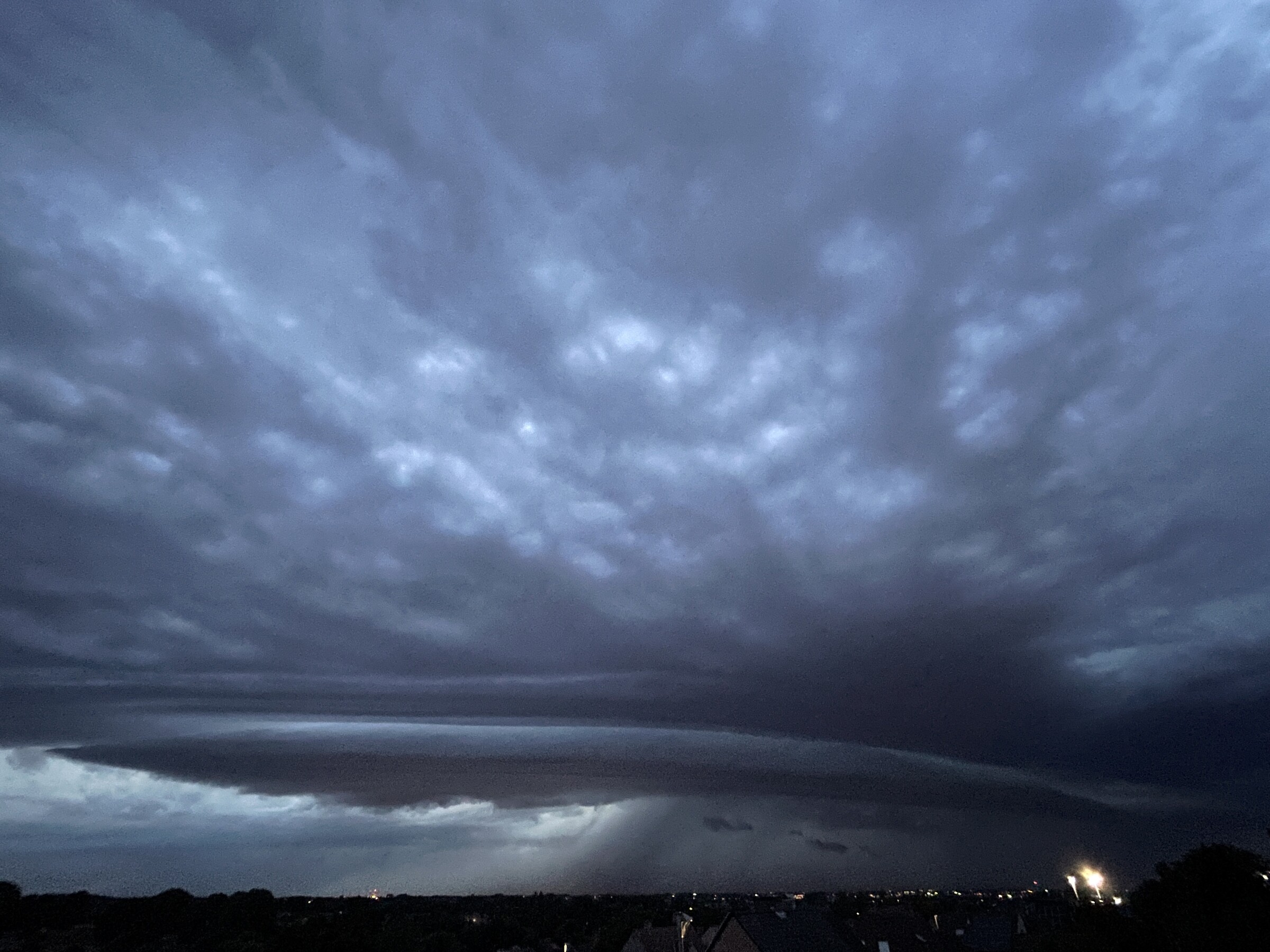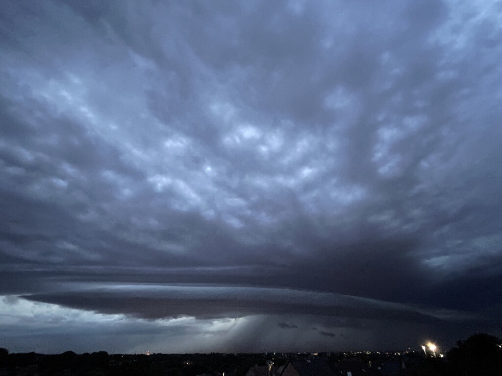 Hele donkere lucht, bliksem en gerommel net te oosten van