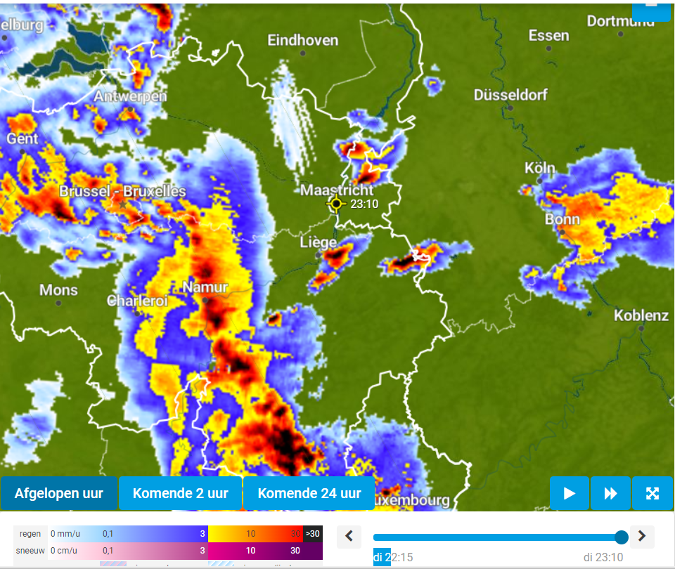 Daarnet ook nog een schampschot van de buien boven Nederlands Limburg. Kortdurend stortregen.