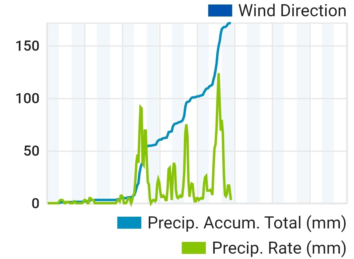 Er zit daar een weerstation met 176 mm neerslag sinds 6 uur vanochtend