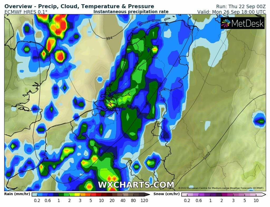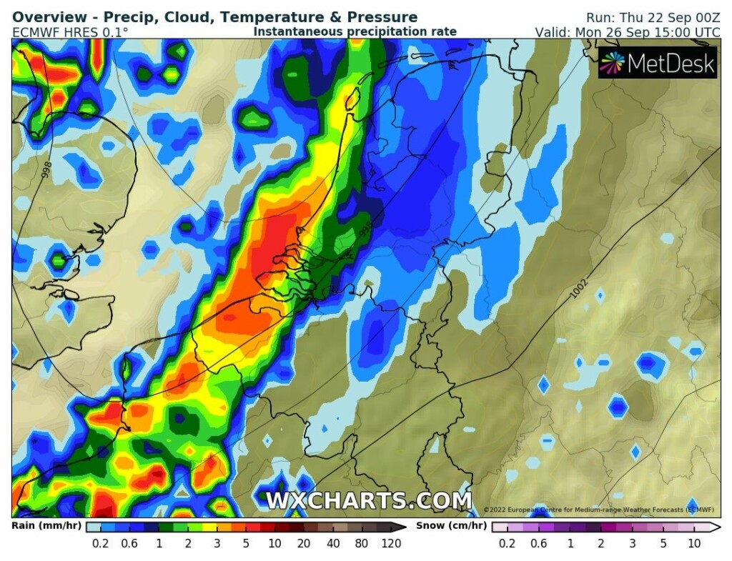 Maandag lijkt een echte regendag te worden met daardoor lage maxima.
