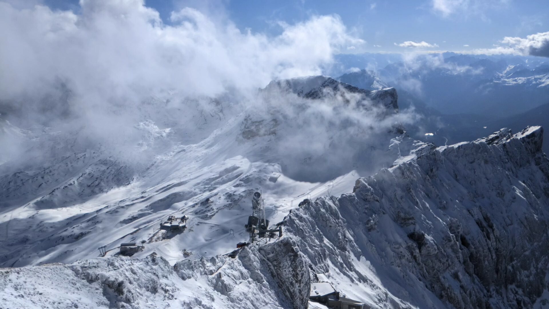 Vandaag ook nog even de Zugspitze op geweest. Daar zouden de pistes al open kunnen. Ligt wel tegen de halve meter sneeuw en vandaag was het 3 graden onder 0.