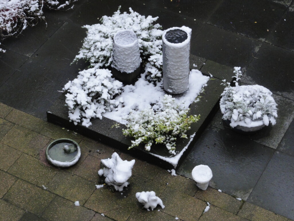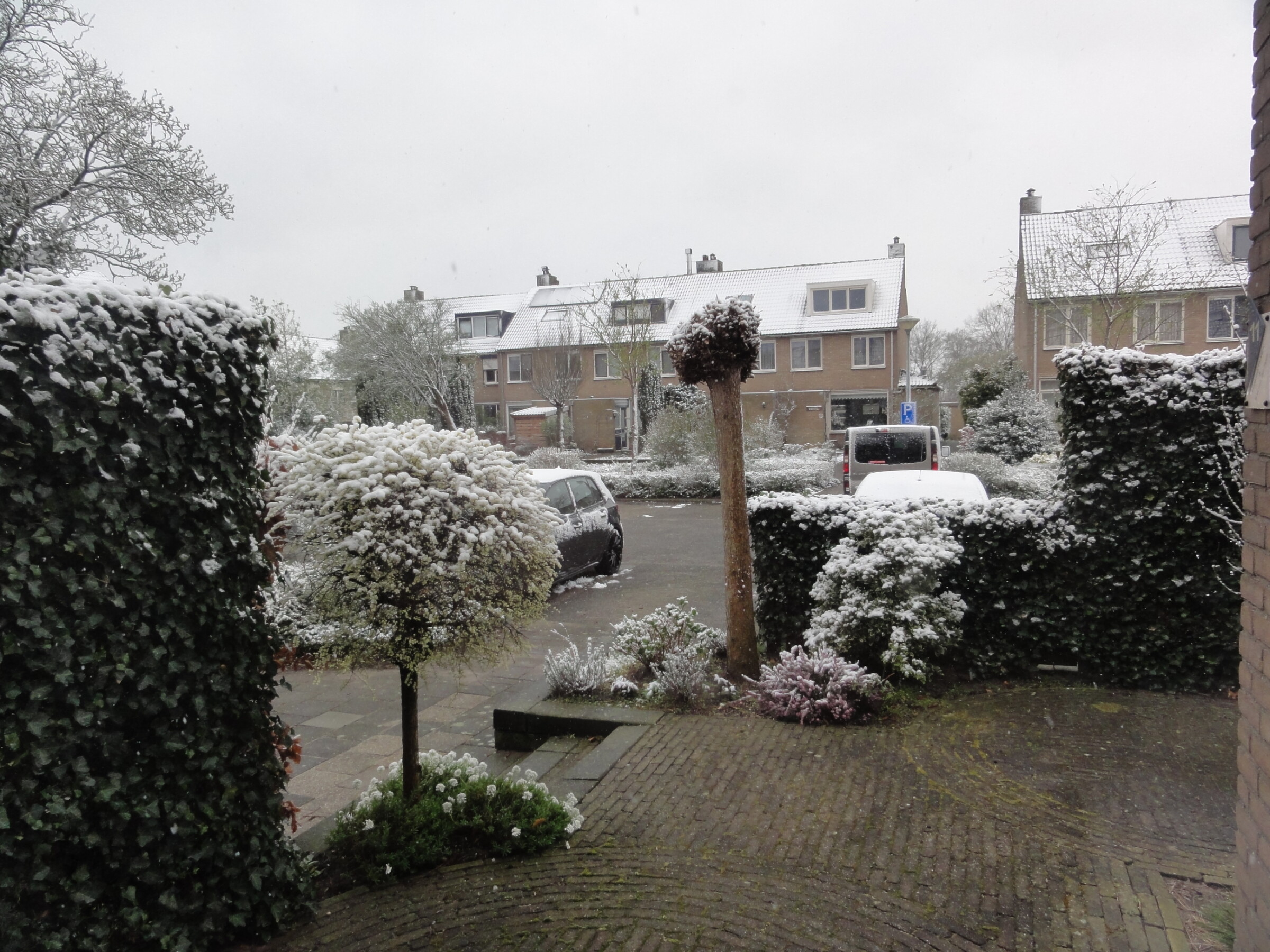 De twee belangrijkste sneeuwsituaties van de afgelopen 'winter' vielen op 31 maart en 1 april! Deze foto's zijn op die laatste datum gemaakt in Bennekom. Apart is ook om te zien dat de sneeuw op de al relatief warme grond vrijwel niet was blijven liggen, maar elders wel.
