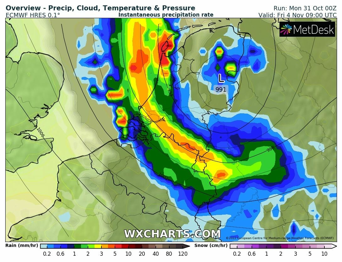 Zal van exacte koers afhangen waar er veel regen valt. Kan ook anders lopen... Gebeurt er tenminste weer eens wat.