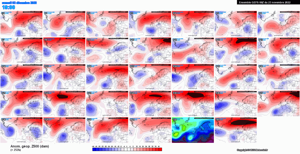 Vrijwel allemaal tonen ze een (veel) hogere geopotentiaal in het noorden. Soms meer bij Groenland, of juist boven Scandinavië of Rusland.