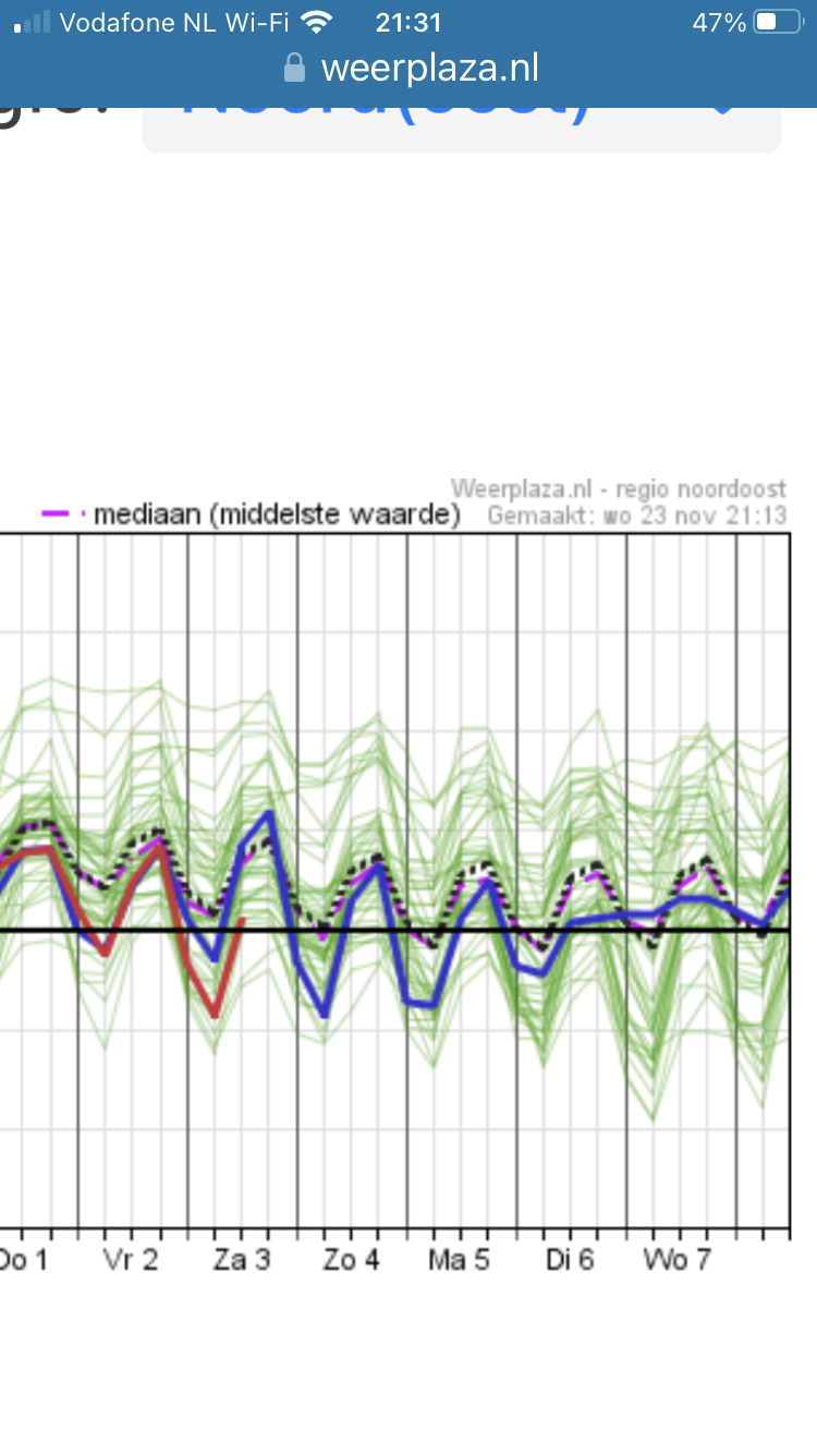 Zo’n lange termijn van de periode na dag 10 zie je vaak een gemiddelde curve die omhoog gaat, bij deze pluim totaal niet!
