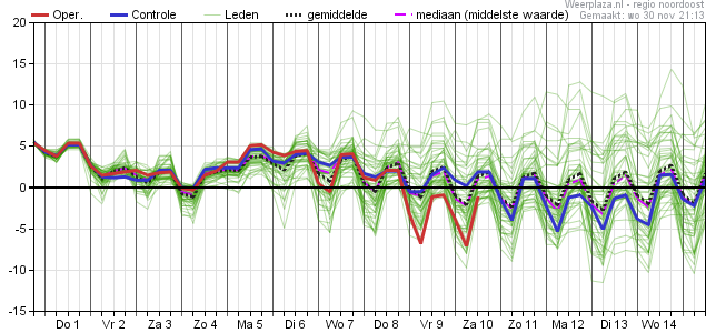 Rond 12 december zelfs maar een paar leden naar 5 graden of hoger overdag.